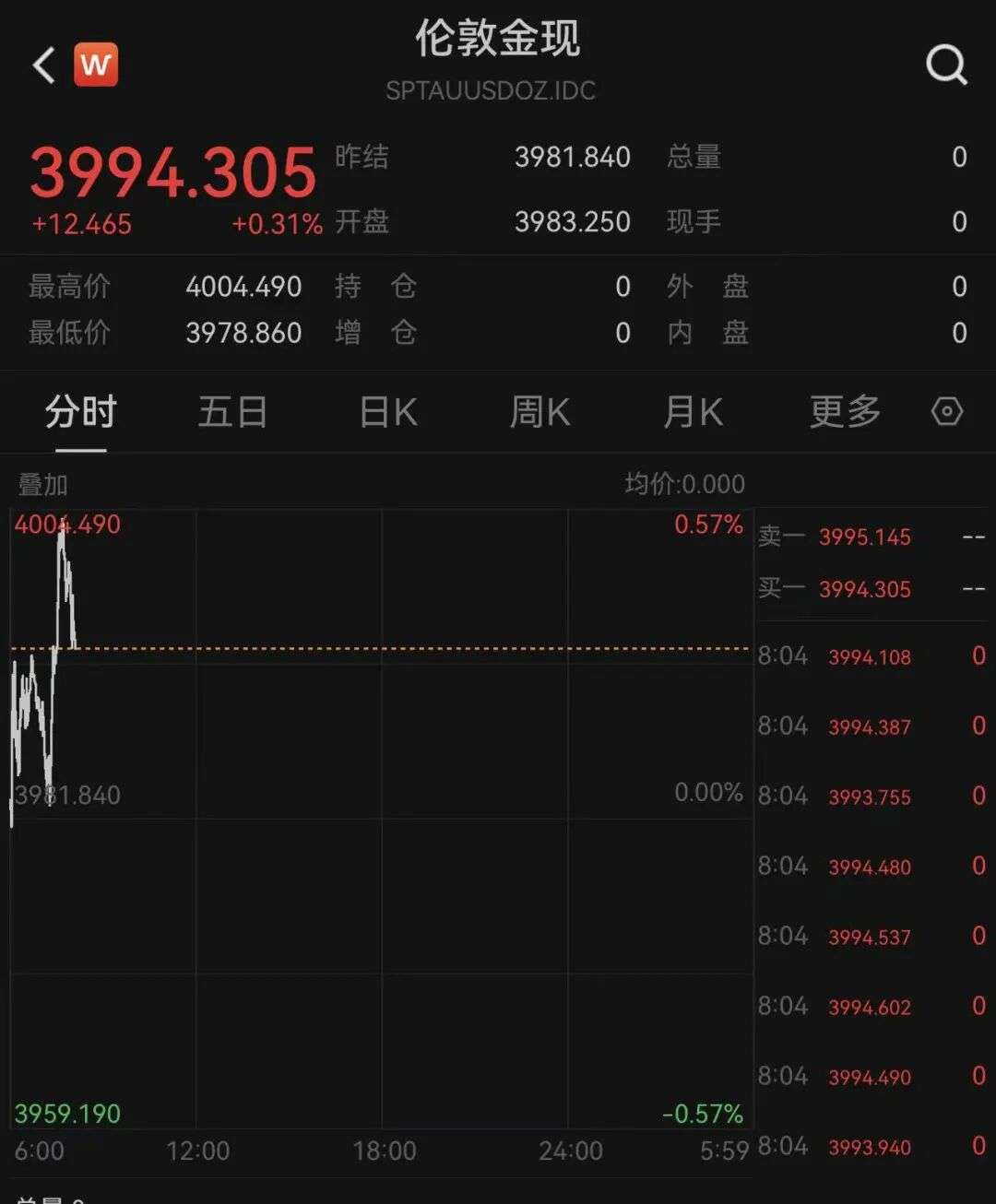贵金属大跌,27日收盘,现货黄金跌破4000美元关口,跌3.15%,报3981.98美元/盎司;COMEX黄金期货跌3.40%,报3997.00美元/盎司;COMEX白银期货跌3.61%,报46.83美元/盎司。28日早盘,现货黄金反弹,突破4000美元/盎司,日内一度涨0.57%,截至发稿,报3994.30美元/盎司,涨0.31%。