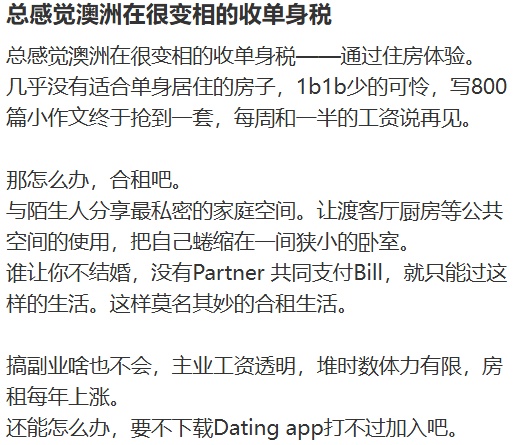 一位网友表示,在澳洲生活,好像一直在被变相收单身税!