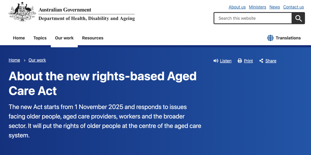 从11月1日开始,澳洲将正式实施新的《老年护理法》,这是对老年人、护理机构、工作人员及整个行业面临问题的回应。