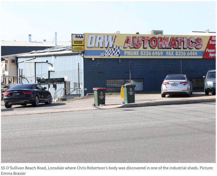 49岁的受害者Chris Robertson于9月30日在Lonsdale一处仓库内被发现身亡。尸检结果显示,他遭受严重袭击,伤势最终导致死亡。