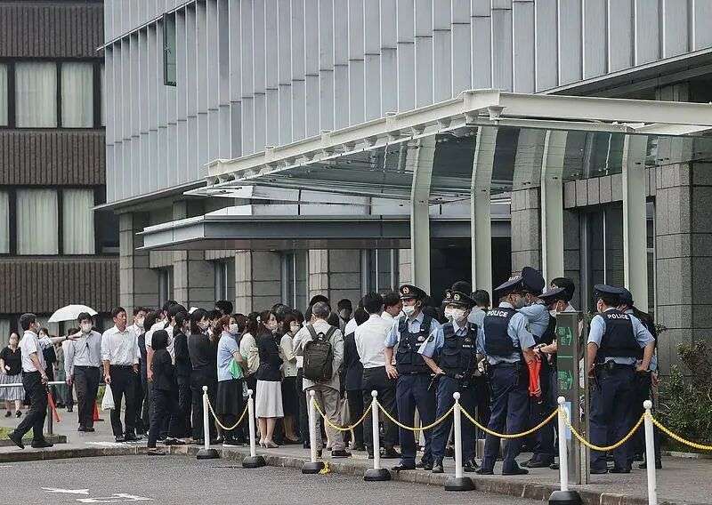 △2023年6月12日,日本奈良地方法院门前。当日正在进行安倍遇刺案审前听证会,奈良地方法院收到一个不明包裹,怀疑可能是危险物品,迅速疏散职员。