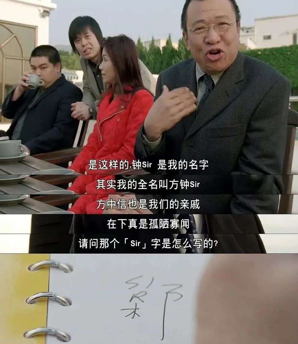 2002年,许绍雄在《新扎师妹》中饰演了钟sir,影片中有个名场面:因为无意透露自己的警察身份,他临时编造自己是“方钟Sir”。