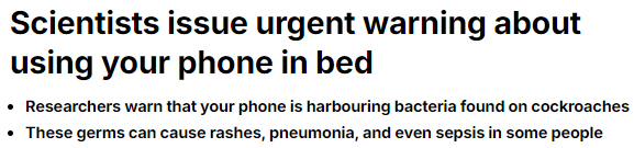 早前的研究发现,医院里捕捉到的蟑螂中,有八分之一携带这种潜在有害的细菌。这对于数百万把手机带到床上的人来说尤其令人担忧。
