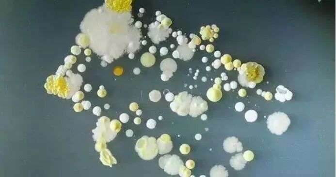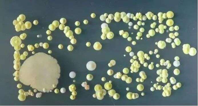 在经过了第三个24小时,可以发现送检的每一个培养皿中都出现了不同颜色以及大小清晰的菌落,最大的有硬币大小。