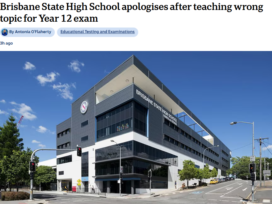 著名公校Brisbane State High School 近日因一项重大教学失误,向学生及家长公开致歉。
