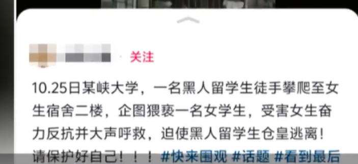 收藏愤怒!黑人留学生夜闯女寝,企图猥亵?!最新回应:已被刑拘、开除