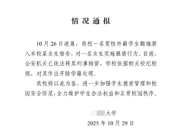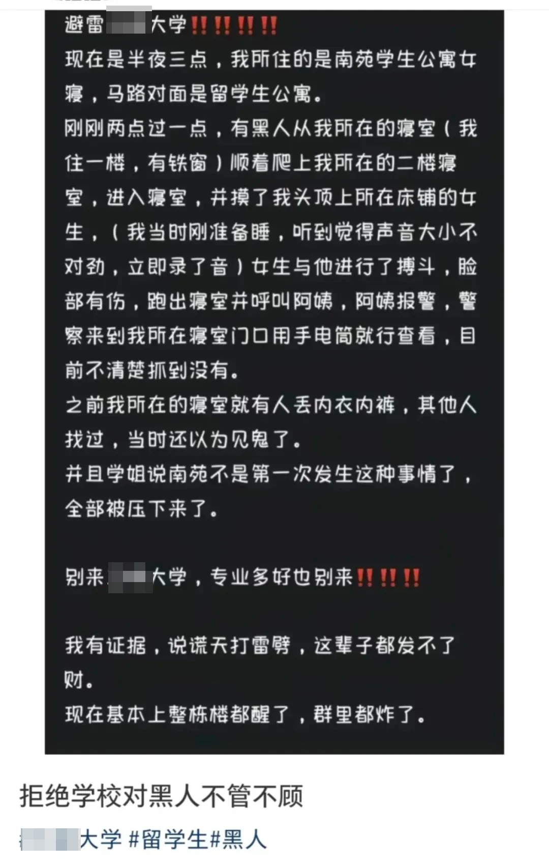前几天湖北某大学发生的留学生深夜潜入女生宿舍猥亵事件,足以震碎三观。