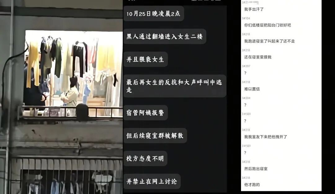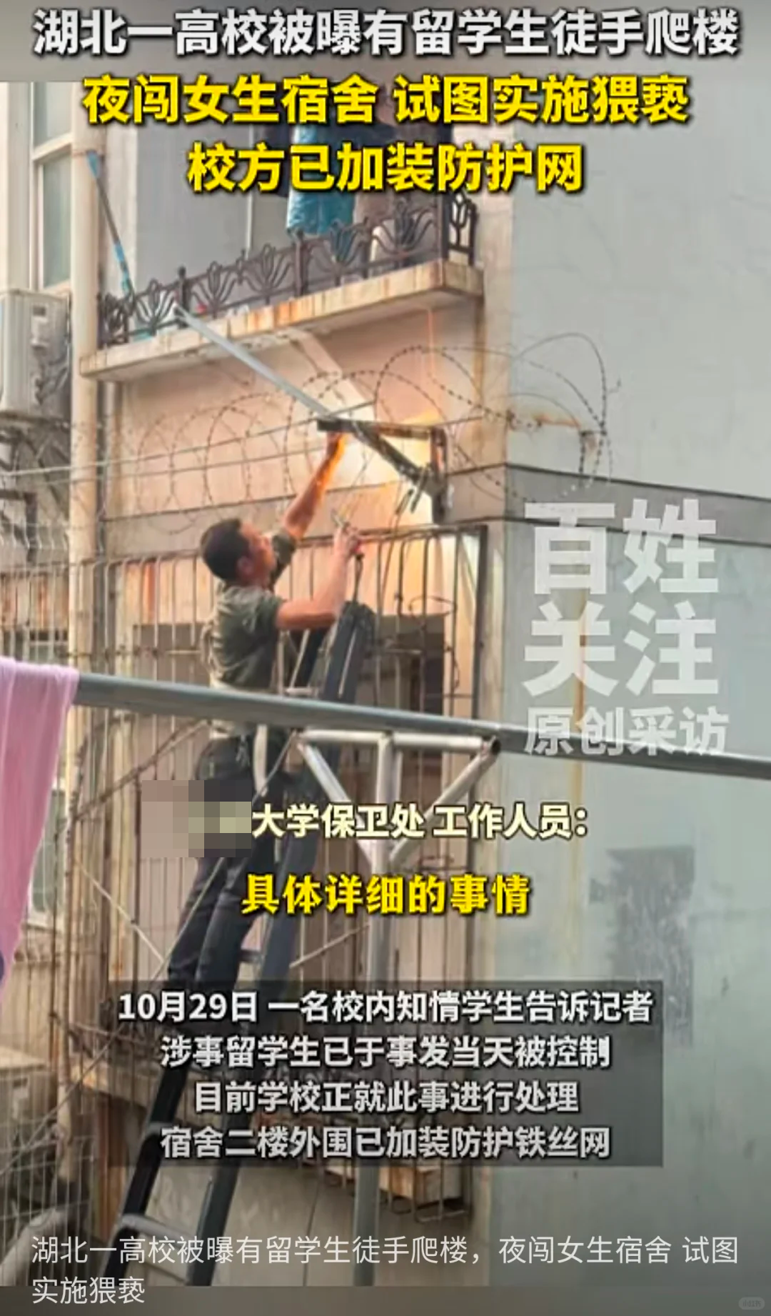 凌晨2点,一个外国人趁着漆黑的夜色翻越围栏,爬进了二楼的女生宿舍。