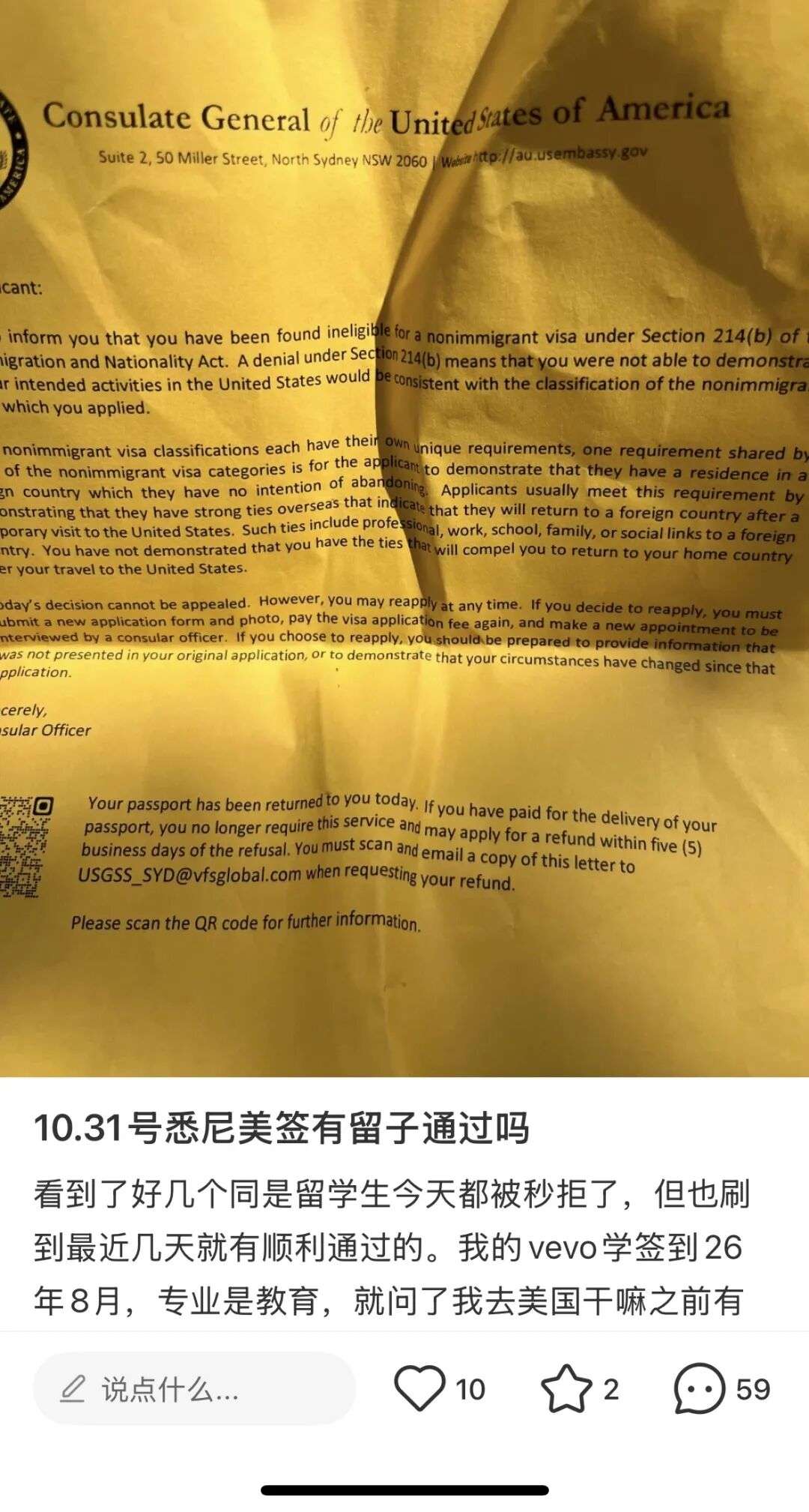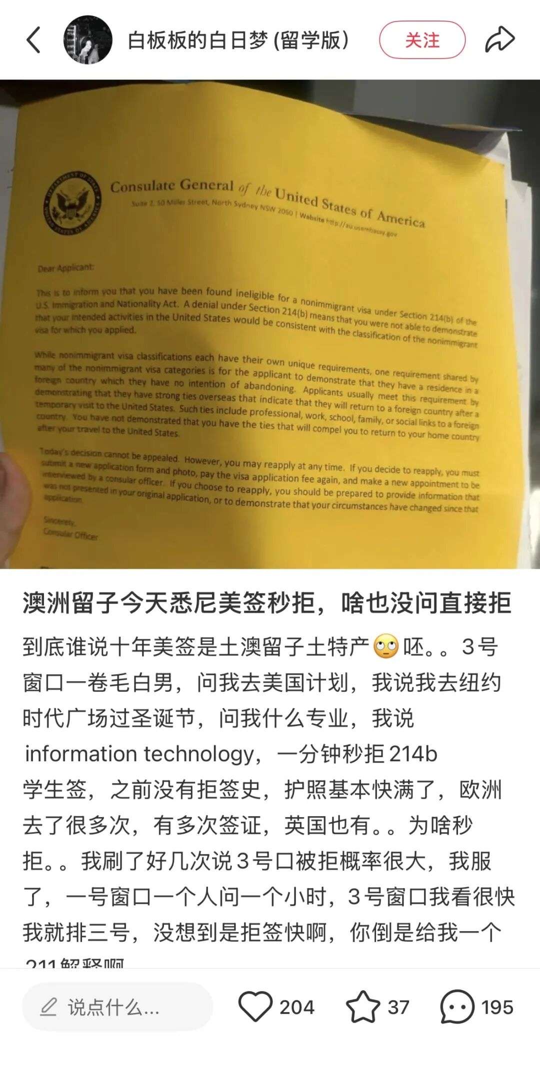 一时间,“澳洲申请美签被拒”的话题在留学圈炸开了锅。