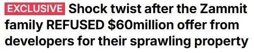 《每日邮报》报道称,该地块位于悉尼The Ponds区Hambledon Rd,Zammit家族多次拒绝了开发商的报价。