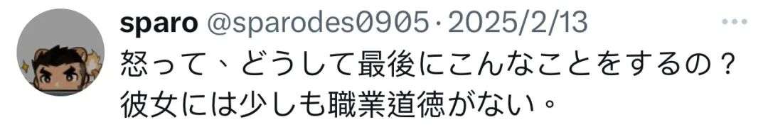 “非常生气!她为什么要做出这样的事情!一点职业道德都没有!”