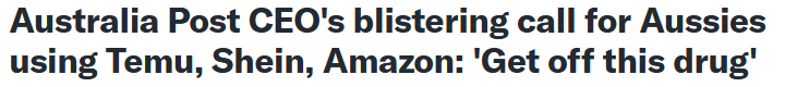 据报道,澳洲邮政(Australia Post)的CEO Paul Graham声称,若消费者不摆脱“对低价商品的依赖”、转而支持本土企业,几年内,海外电商巨头Amazon、Temu和Shein等将掌控澳大利亚大部分线上零售市场。
