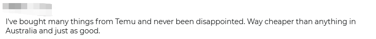 “我在Temu上买了很多东西,从没失望过,比澳洲的很多东西都便宜,而且一样好。”
