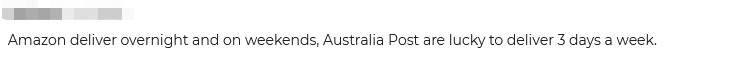 “Amazon可隔夜送达,周末也能送达。澳洲邮政一周只有3天能送货。”