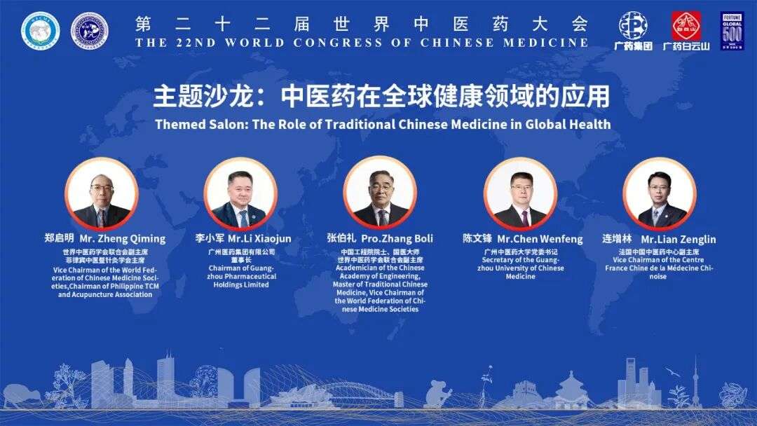 在“中医药在全球健康领域的应用”主题沙龙中,中国“人民英雄”国家荣誉称号获得者、中国工程院院士、国医大师、世界中医药学会联合会副主席张伯礼,世界中医药学会联合会副主席、菲律宾中医暨针灸学会主席郑启明,广州中医药大学党委书记陈文锋,法国中国中医药中心副主席连增林,广药集团董事长李小军,围绕中医药在全球健康的应用、中医药出海和跨文化传播等进行了深入的对话与探讨。广药白云山副总经理郑坚雄主持活动。