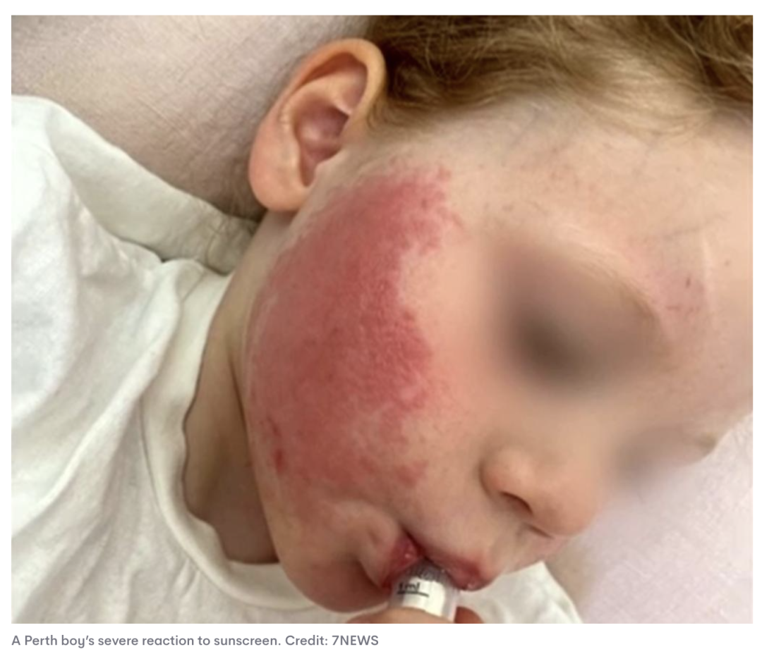 据报道,澳洲的父母被警告说,有娃因为流行的防晒产品而烂脸。
