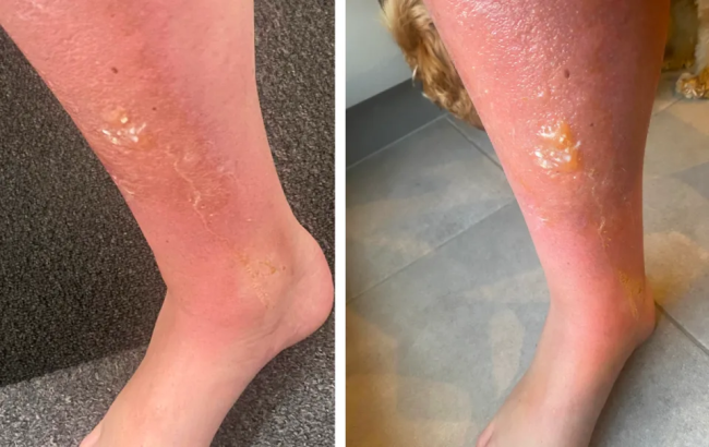 妈妈的小腿晒伤鼓脓