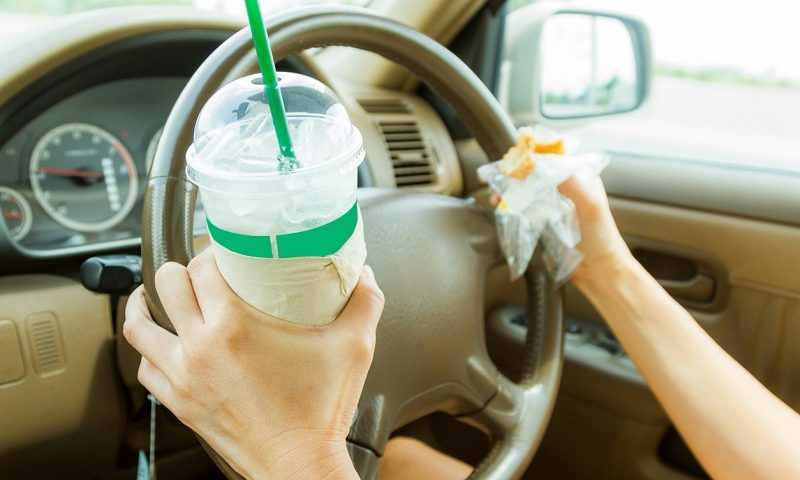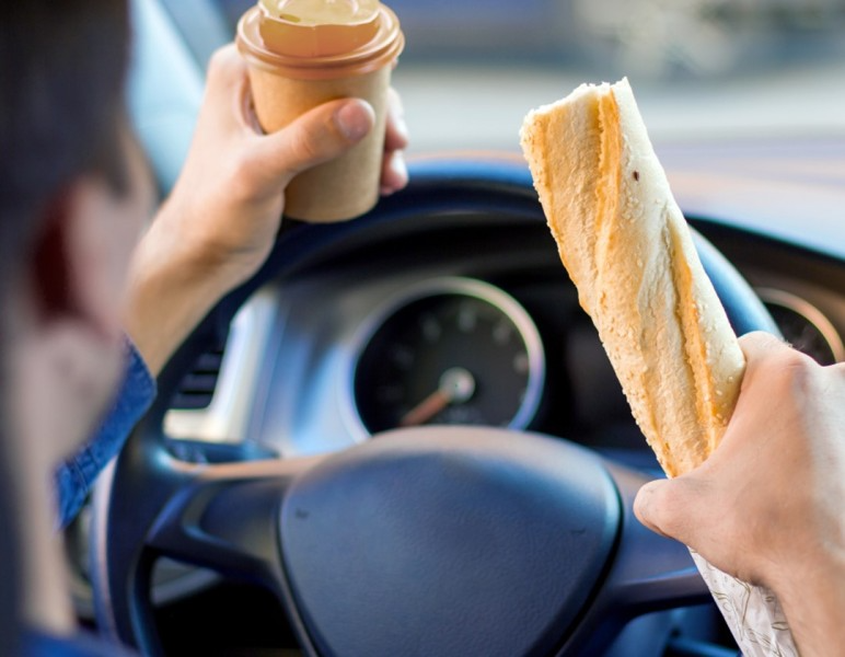 开车时,请尽量避免一边喝咖啡一边拐弯、一边剥香蕉一边换道……