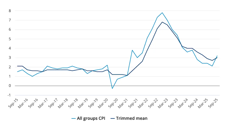 9月份年度总体通胀率上升至3.2%,核心通胀(经截尾处理的平均通胀率)上升至3.0%。
