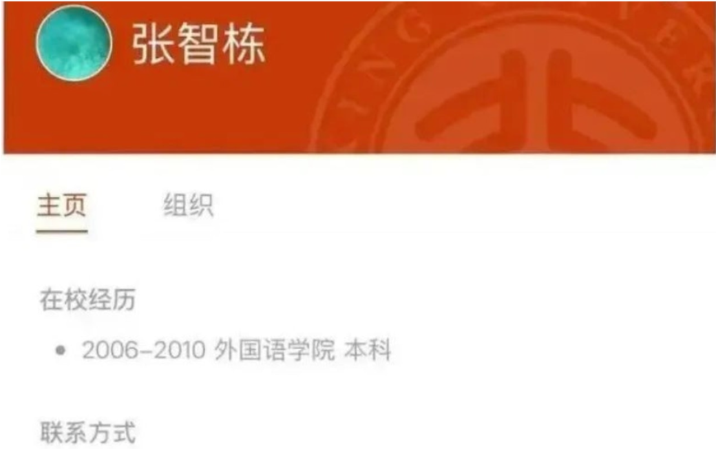 综合媒体的报道,张智栋,1988年出生在北京,中学就读于北大附中,本科考入北京大学西语系,是个标准的学霸,很多人眼里“别人家的孩子”。