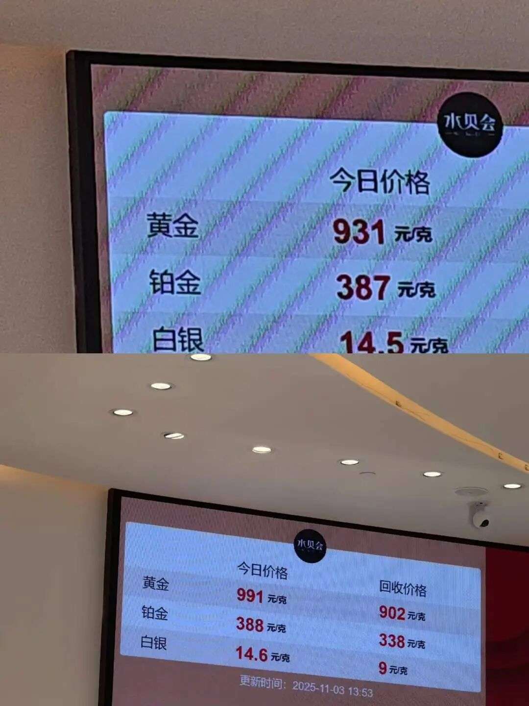 昨日深圳水贝市场金价两小时上涨60元 图片来源社交媒体