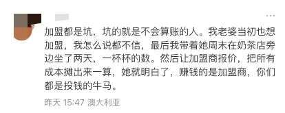收藏全澳曝光!华人加盟奶茶品牌血亏$30万!压力大到精神崩溃!加盟风暴让无数人惊醒,网友评论区炸锅...