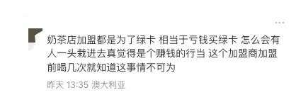 “奶茶店加盟都是为了拿绿卡,相当于亏钱买签证。真想赚钱的早就知道这行不行了。”