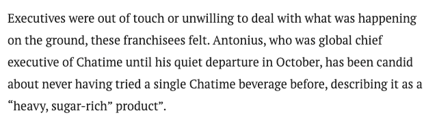 更具讽刺意味的是,Chatime的前全球CEO居然公开承认: