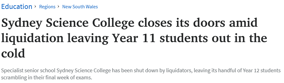 悉尼科学学院(Sydney Science College)的代理校长兼联合创始人Joey Tsao已就此事被联系置评,清算方亦收到问询。