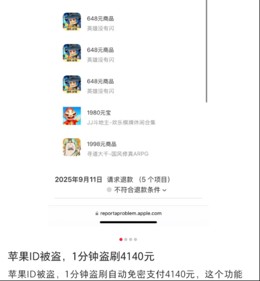 “(我的)苹果ID被盗,1分钟刷走4140元!”