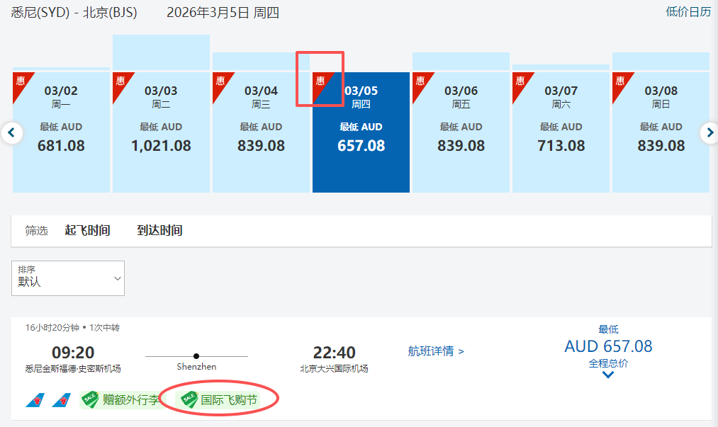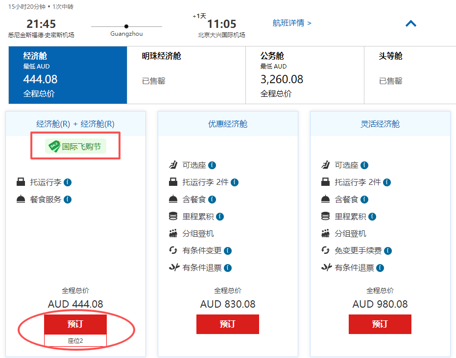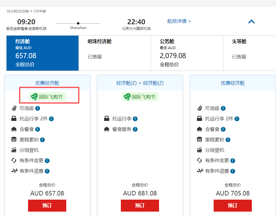 选择好日期后,大家可以选择参与活动的航班。请大家注意,参与活动的航班会有“CZSALES”绿色标签。