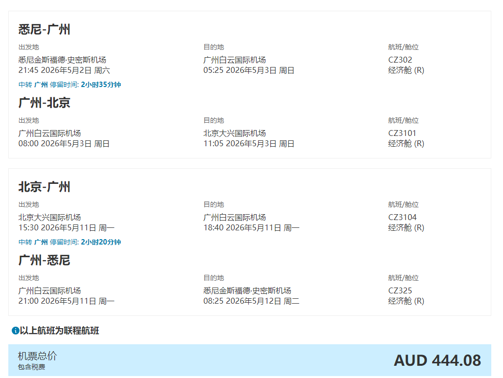3. 完整旺季增班计划请见:南航中澳航线旺季增班信息,更多航班更多选择,出行更轻松