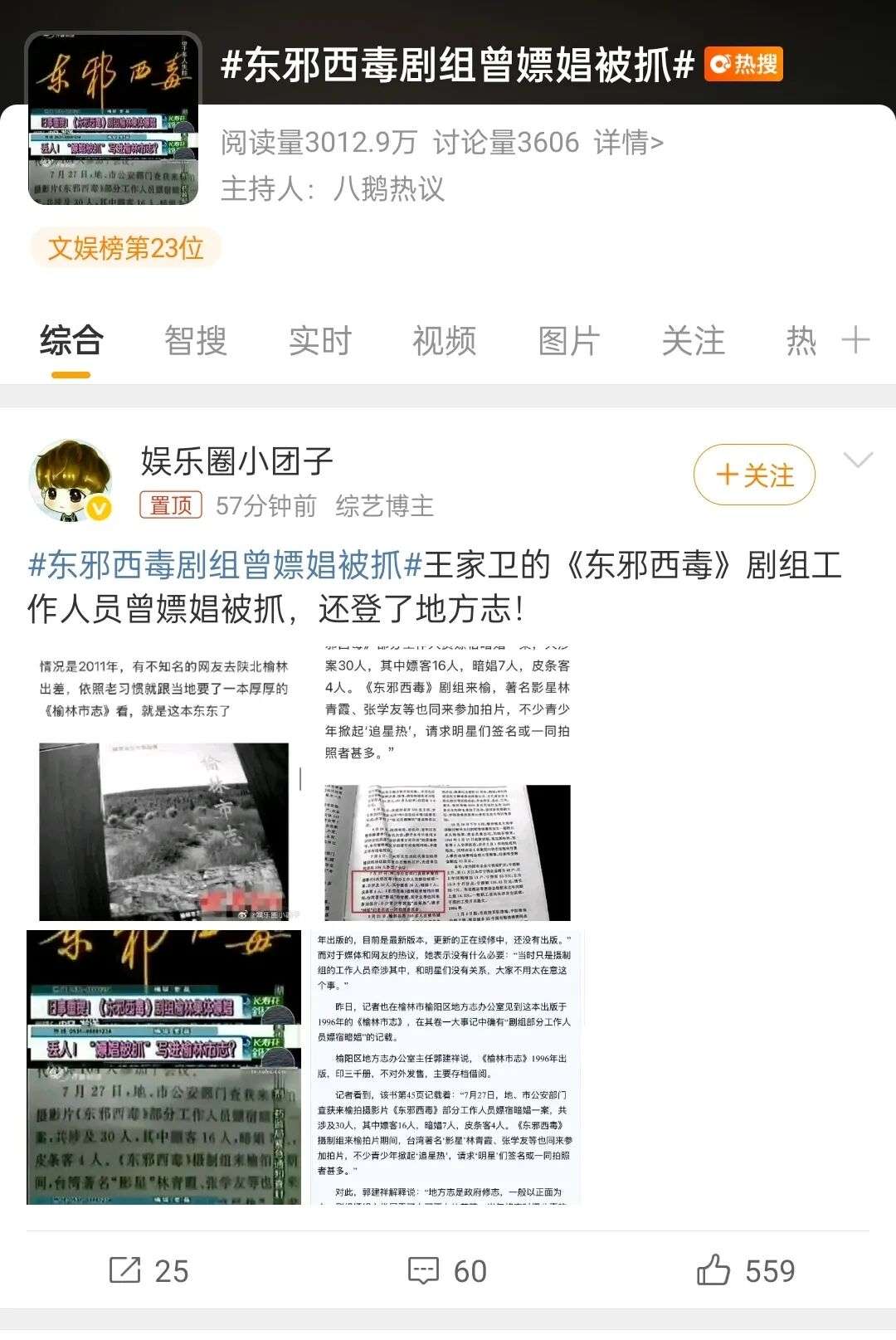 还有前两天曝出来的,《东邪西毒》剧组工作人员,曾因嫖娼被抓事件。