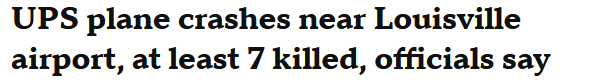 失事飞机是一架MD-11,已十分老旧,于1991年首飞,至今已有34年机龄,隶属于世界最大的快递公司联合包裹服务公司(UPS),原计划从路易斯维尔穆罕默德·阿里国际机场飞往檀香山。