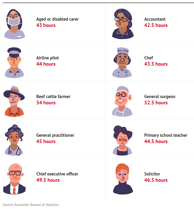 矿工、农民、外科医生,甚至国会议员——这些职业都跻身澳大利亚工作时间最长的行列。