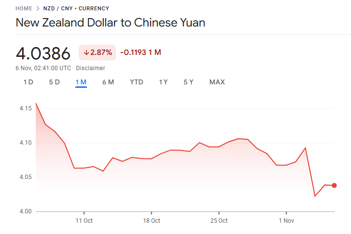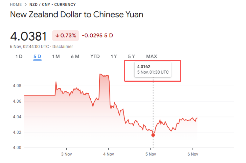 2025年11月5日纽币兑人民币汇率。Photo: Google