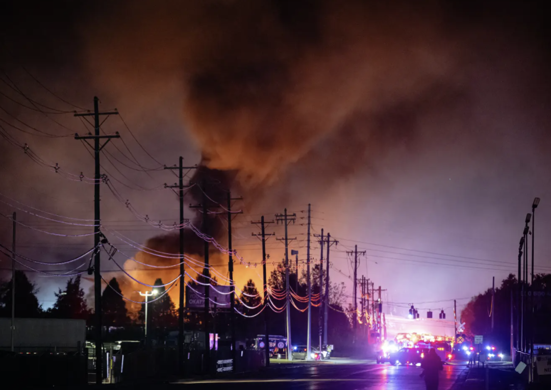消防部门称,约3.8万加仑(约14万升)航空燃油被引燃,形成滚滚火流,火光直冲云霄。