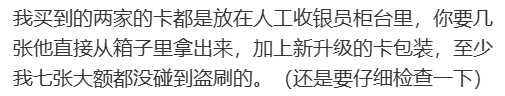 还有消费者指出,货架上看似外观没有异样的卡片,其实部分卡的兑换码已经被涂改,自己买了三张就有一张是这种情况。