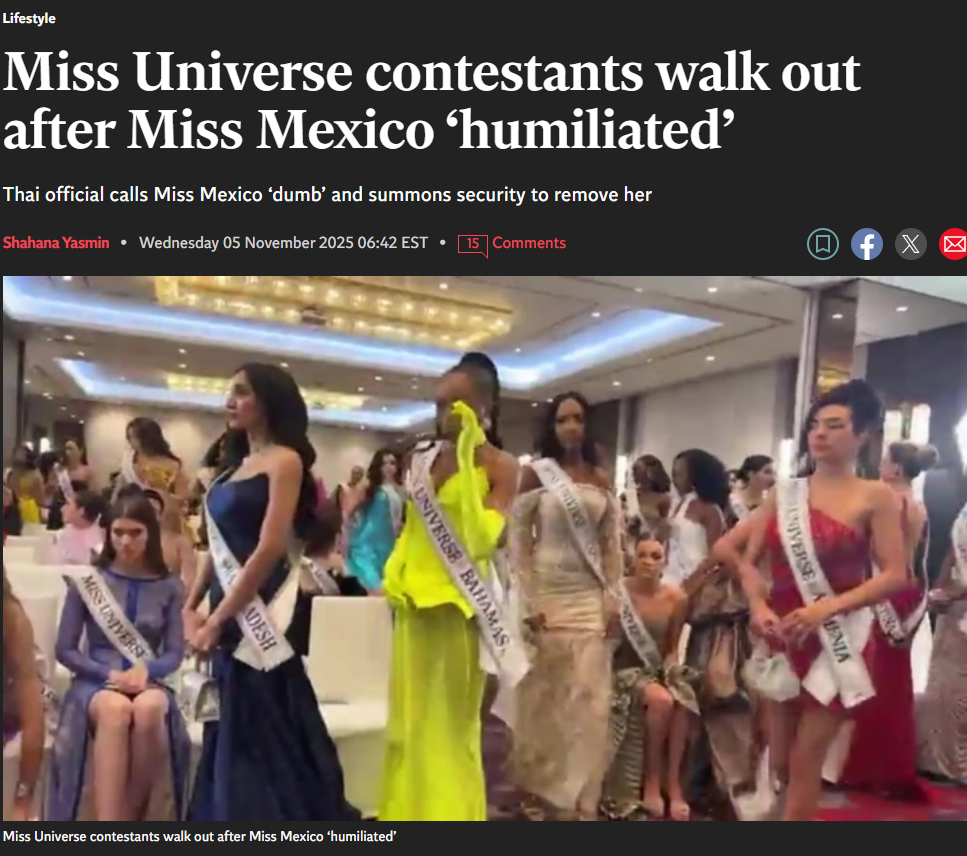 正在泰国举行的2025年环球小姐(Miss Universe)选美大赛,因主办方高层在公开场合辱骂选手,引发选手集体抗议与舆论海啸,令赛事蒙上阴影。