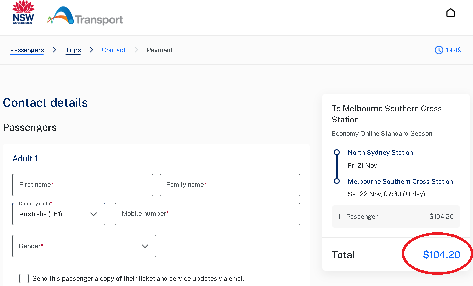 老墨给大家测试了一下,以11月21日周五,从Sydney Central出发至墨尔本为例,