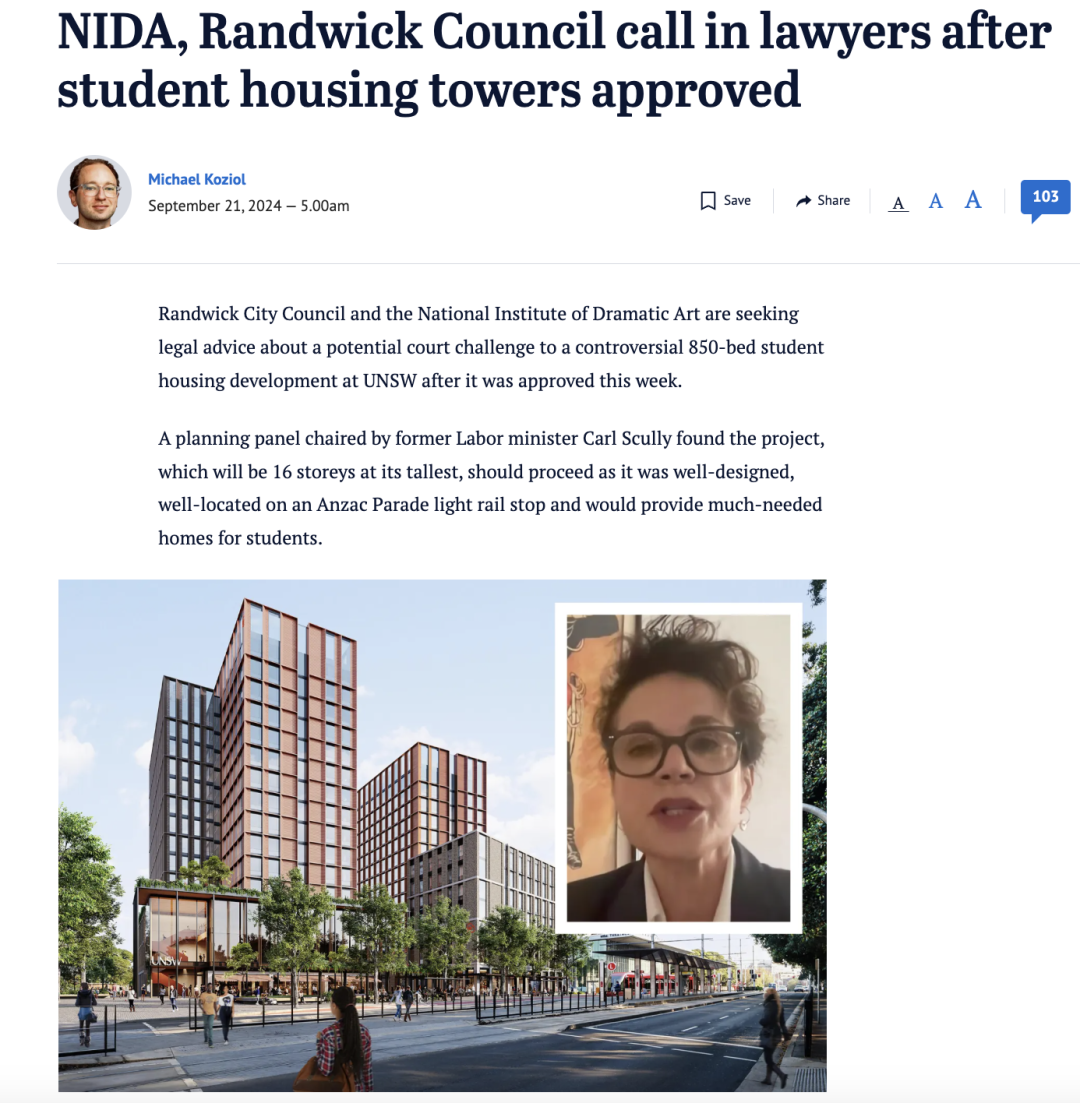 别忘了,之前 UNSW 想扩建学生宿舍时,Randwick Council 直接举手反对!