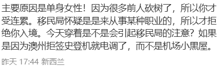 不过也有观点认为,这位华女被遣返主要是因为澳洲签证被拒。