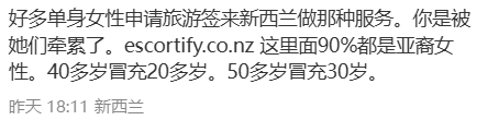 尤其新西兰曾出现多起假借旅游签,实际是前往从事色情服务或者打黑工的案例,因此导致移民局官员会对类似申请者格外警惕些。