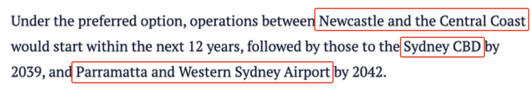 第一阶段(纽卡斯尔 → 中央海岸):预计2037年正式开通