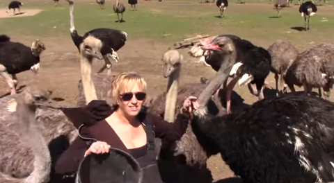 一家人经营这个农场已经30多年,其中一些鸵鸟已经跟他们生活34年,就像家人一样。