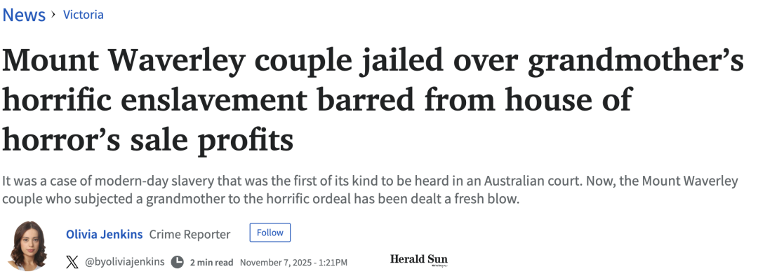 在墨尔本东南区Mount Waverley,一栋外观看上去无比寻常的别墅中,曾藏着一起震惊全澳的现代奴役案。