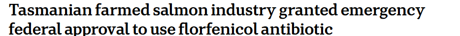 就在获批通知下达当日,澳洲三文鱼行业巨头Tassal公司,就已经开始在塔州最南端Dover的两处三文鱼养殖场使用氟苯尼考,预期很快其他公司也将开始使用。