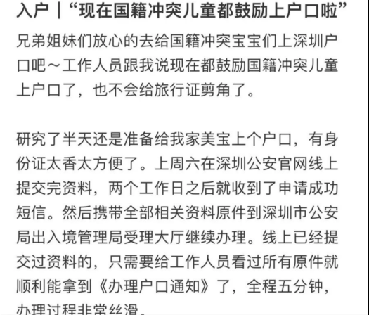 这位母亲在社交媒体上分享了自己的办理经验,她的孩子同样是国籍冲突,可现在不仅办理了旅行证,还成功办理了中国户口!