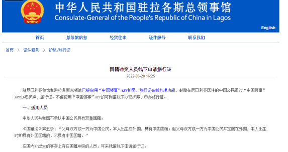 对于这一点,在中国驻其他国家的领事馆上,也有明确的说明,即虽然不承认双重国籍,但在国内外出生的事实上存在国籍冲突的人员,可申请旅行证。