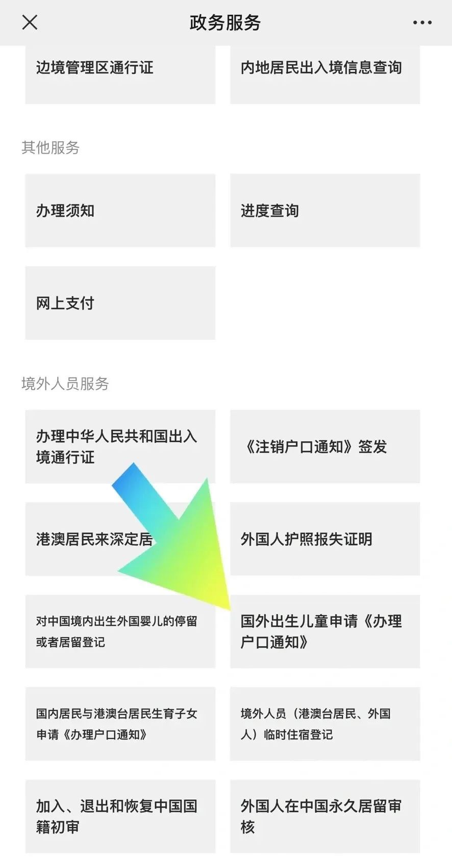 具体方法需要进入当地公安局的公众号,点击政务服务-出入境业务-国外出生儿童申请《办理户口通知》。